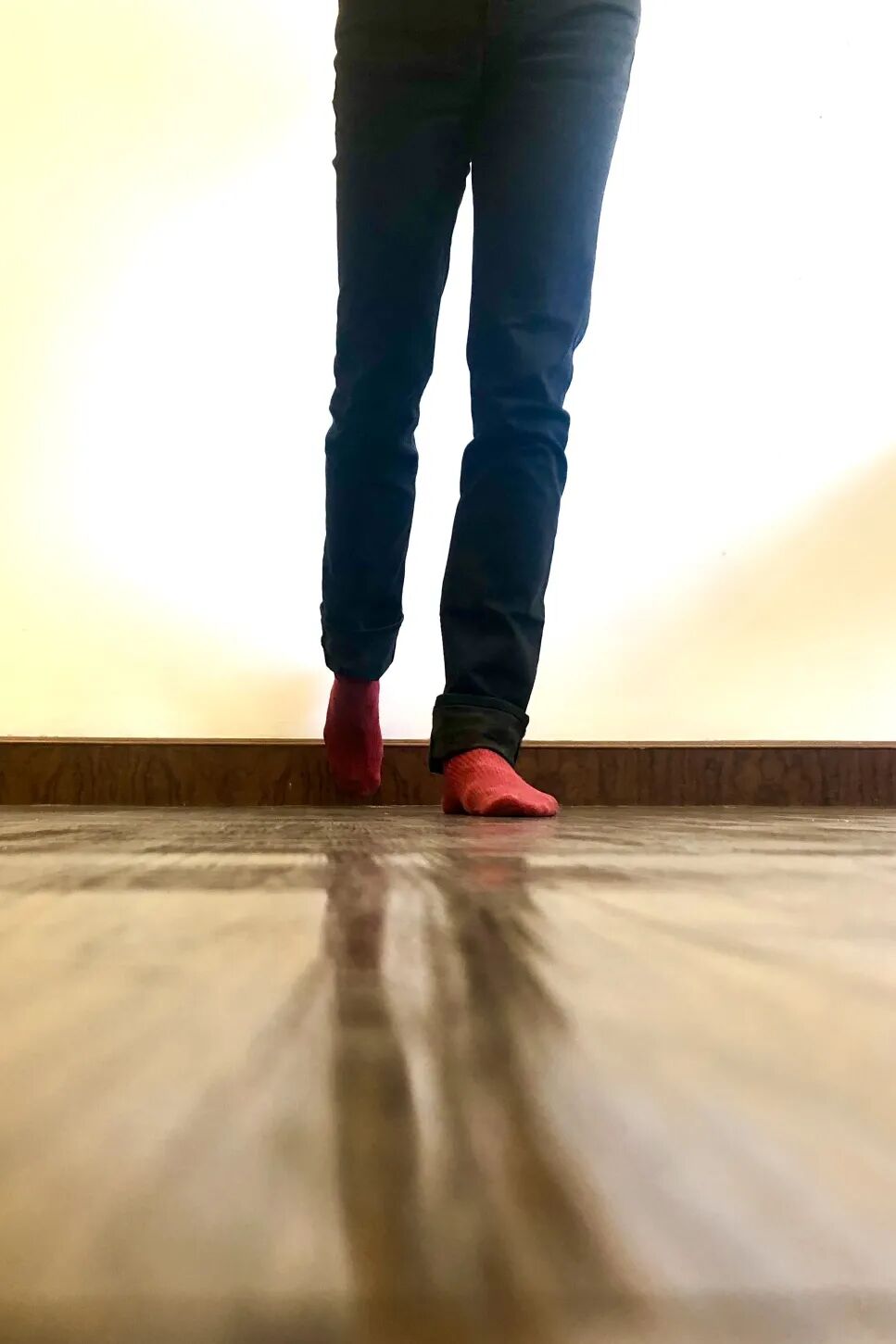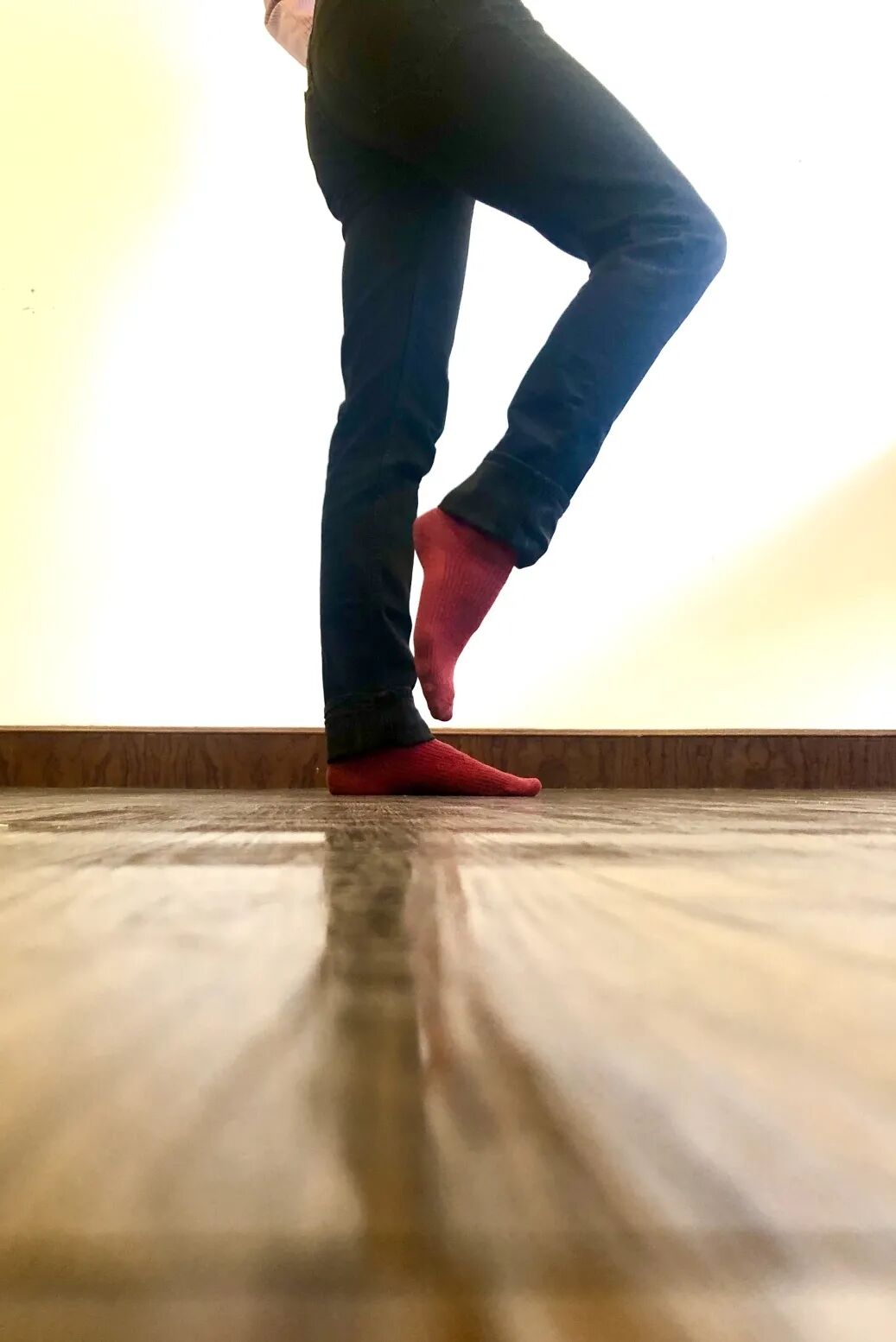 Get one foot on your toes, roll your toes under your feet